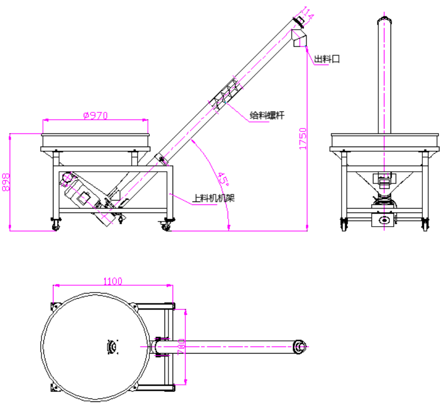 螺桿上料機是根據螺旋旋轉時(shí),由葉片的推動(dòng)作用,同時(shí)在物料自身重力、物料與料管內壁間的摩擦力以及物料的內摩擦力的作用下,物料以與螺旋葉片和料管相對滑動(dòng)的形式,在料管內向前移動(dòng)的機械傳動(dòng)原理進(jìn)行生產(chǎn)的。