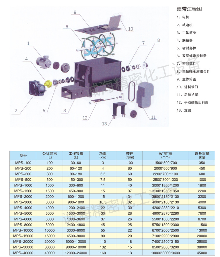 螺帶混合機設備類(lèi)型混合機的形狀及尺度,內部插入物,原料及外表狀況等影響混合效果,應根據物料的性質(zhì)挑選適合的混合器。操作條件物料的充填量、裝料方法、混合比、